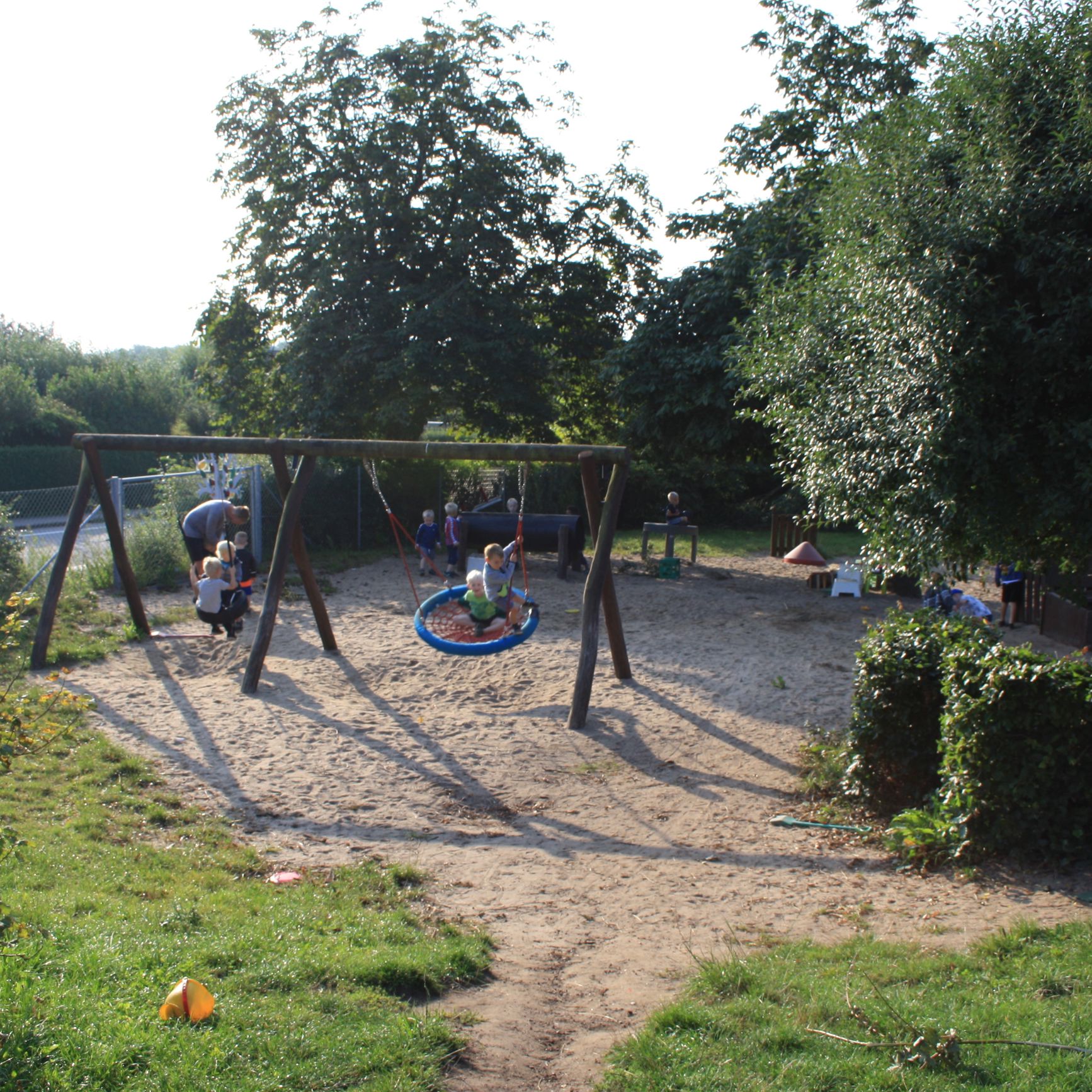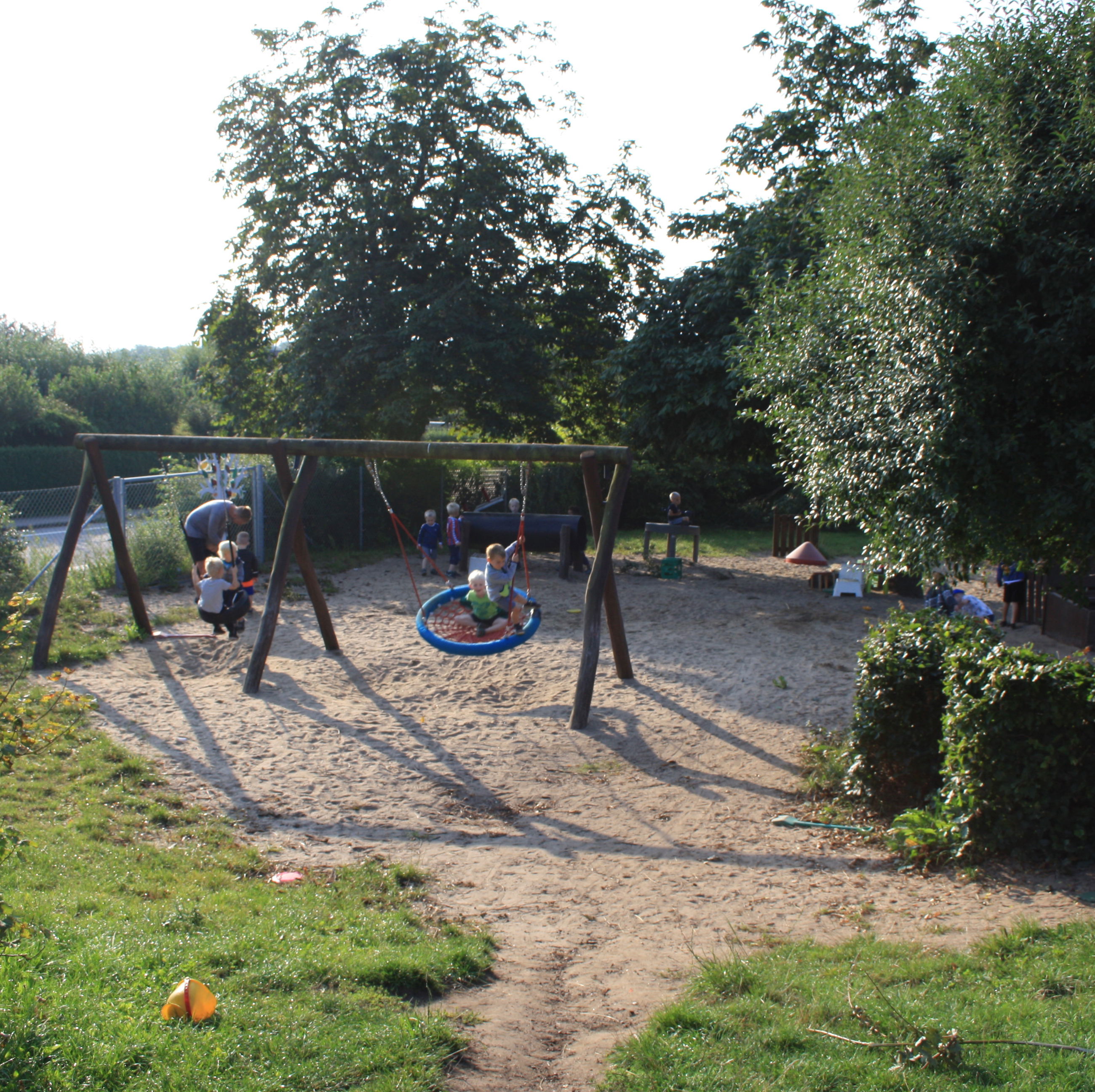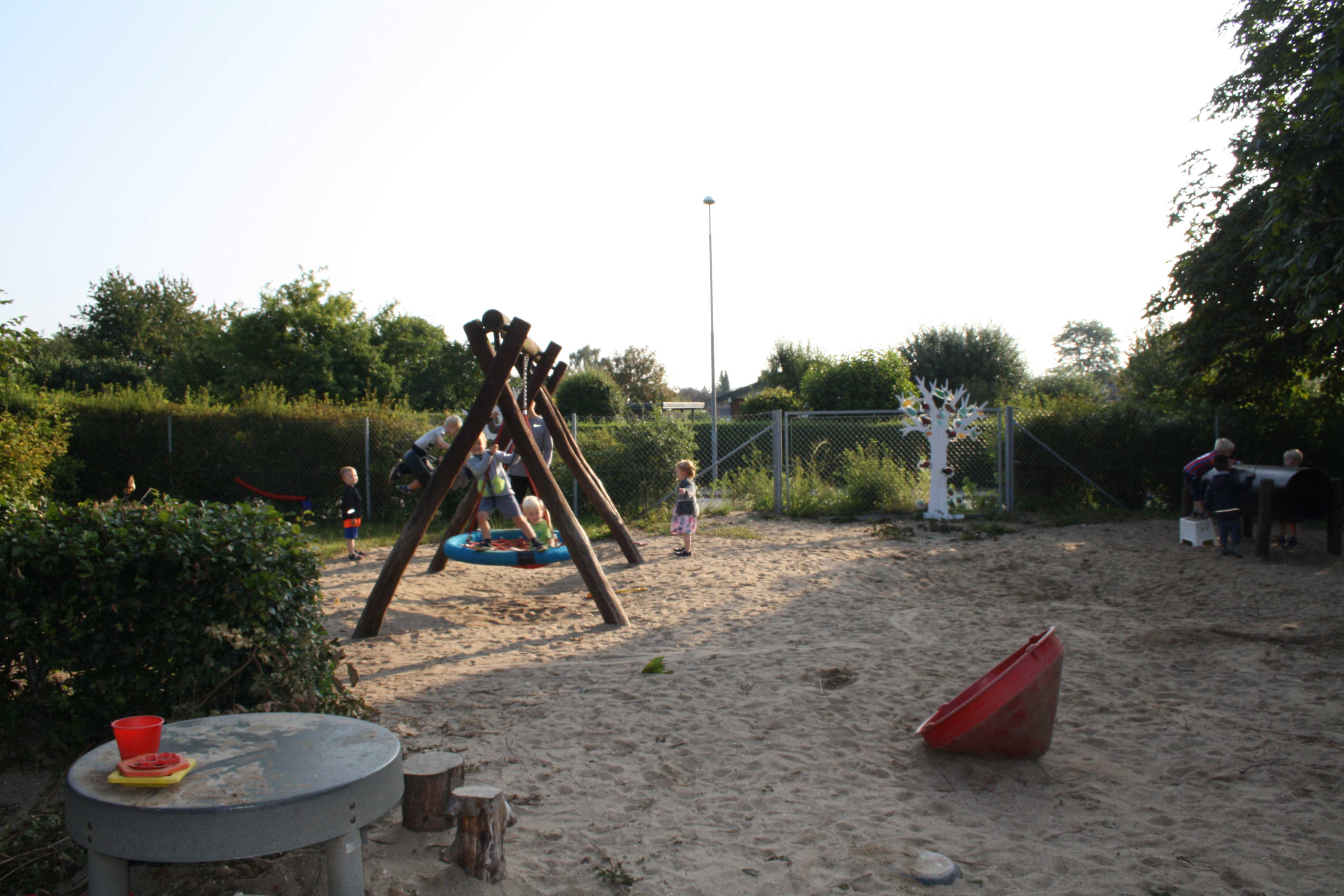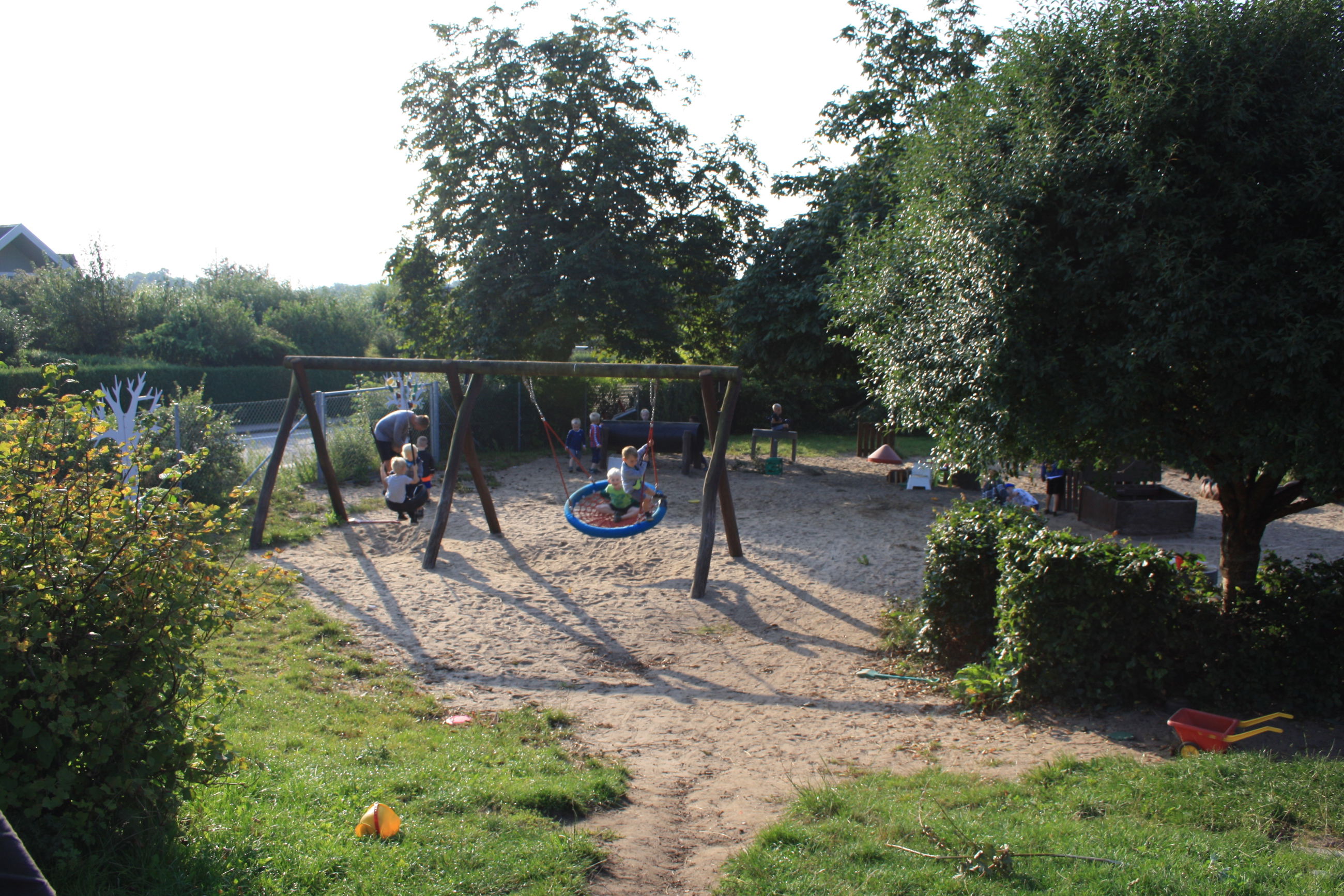 Vi har en skøn og overskuelig legeplads med en sandkasse, gynger, et legehus, klatrestativ, rutchebane og et grønt område. Der er både plads til motorisk udfoldelse og fordybelse på legepladsen. Der er desuden et halvtag ude på legepladsen, som vi nogle gange spiser under.