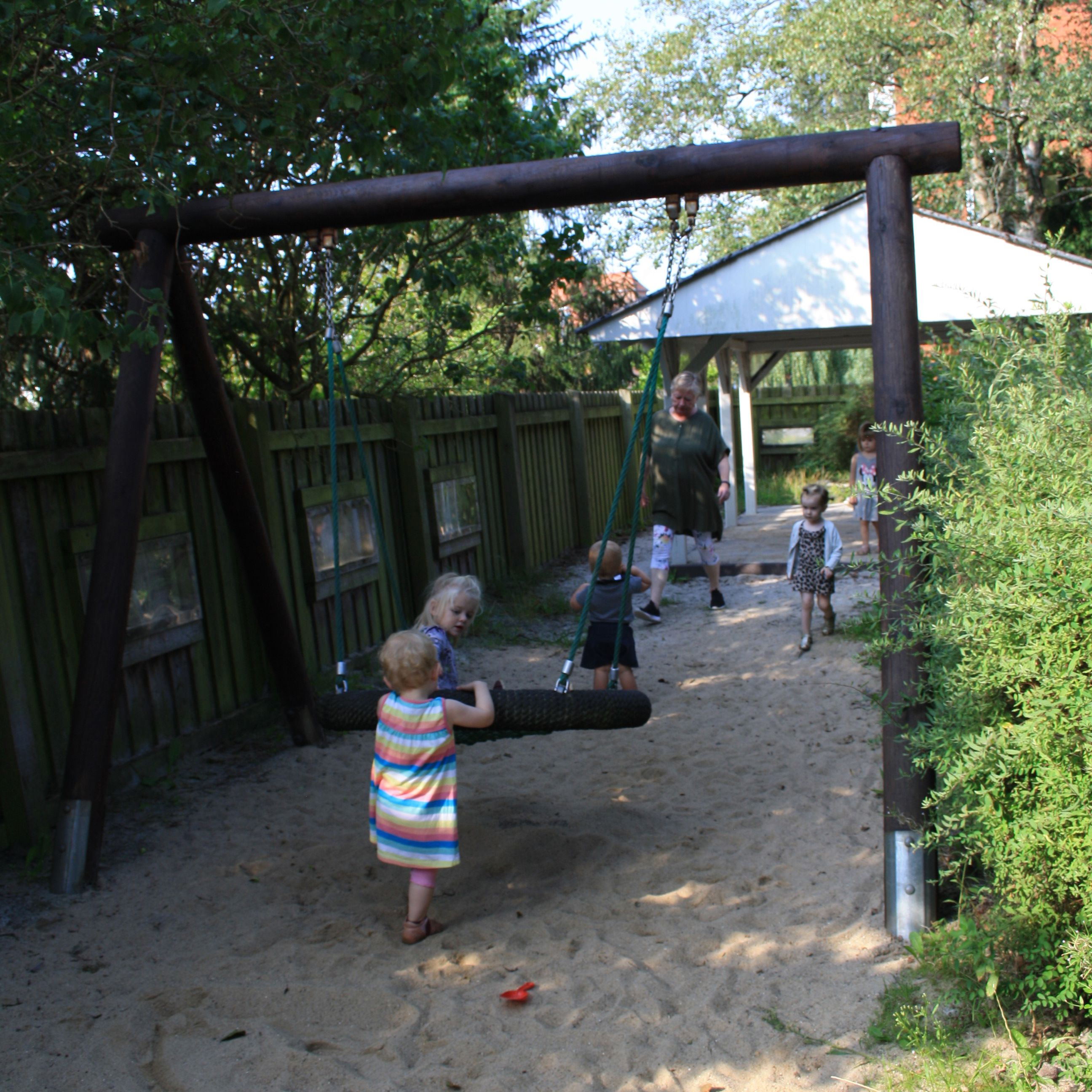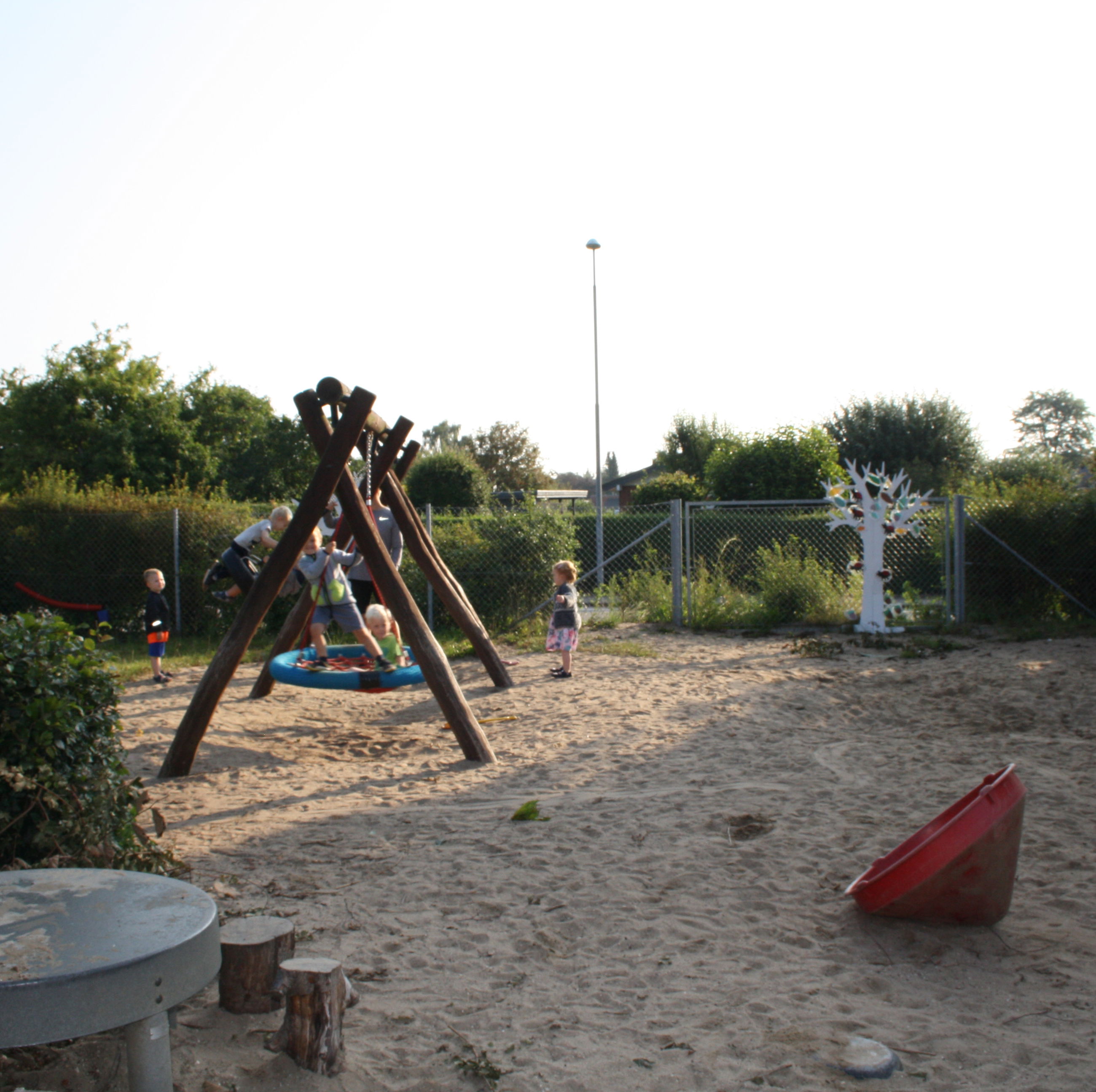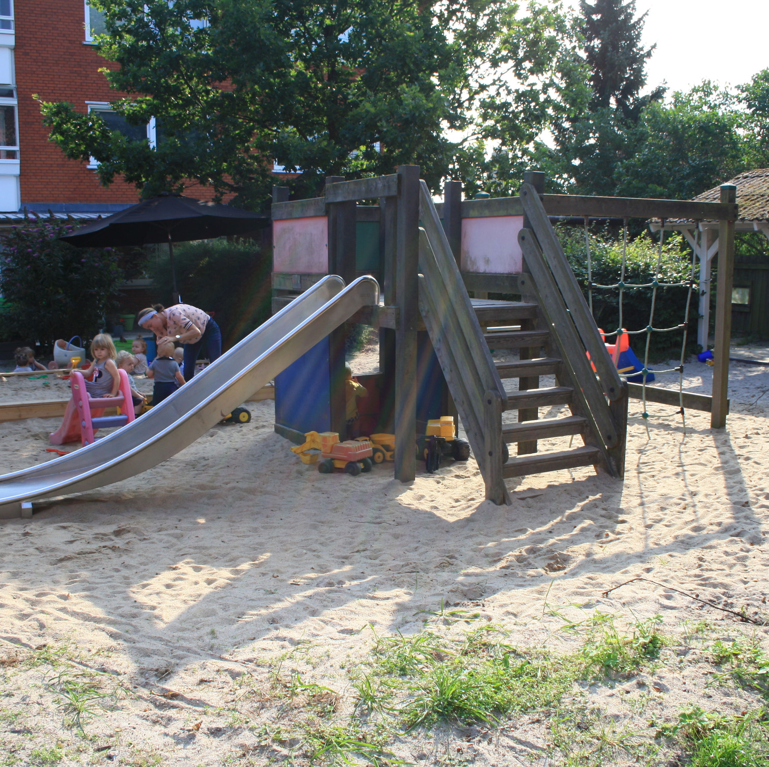 Vi har en skøn og overskuelig legeplads med en sandkasse, gynger, et legehus, klatrestativ, rutchebane og et grønt område. Der er både plads til motorisk udfoldelse og fordybelse på legepladsen. Der er desuden et halvtag ude på legepladsen, som vi nogle gange spiser under.