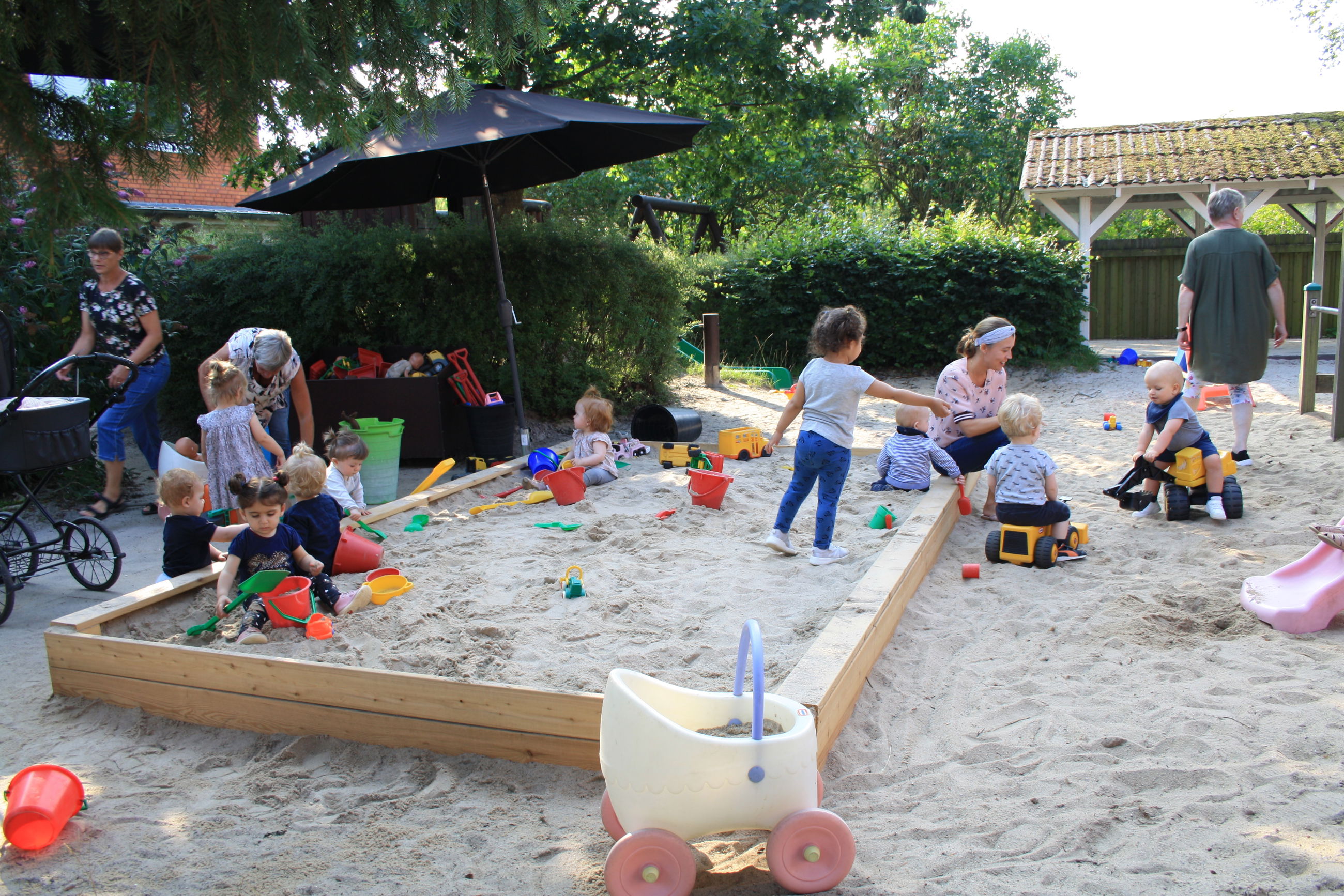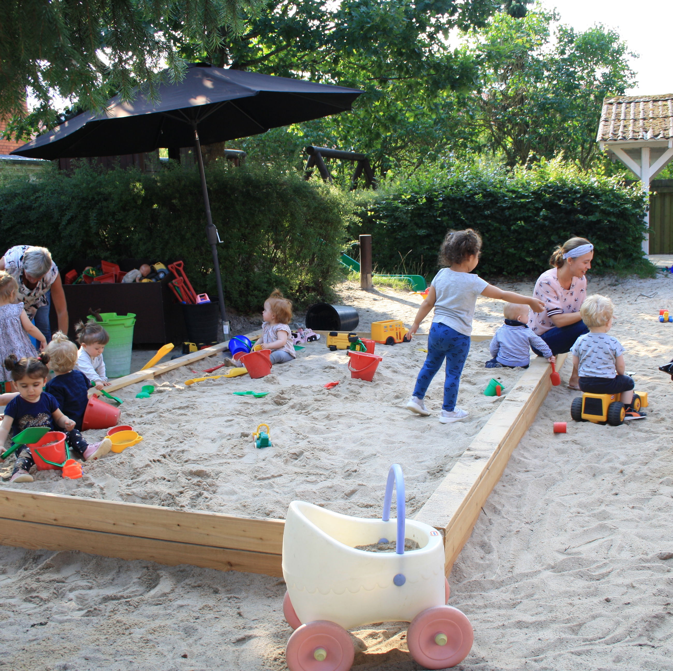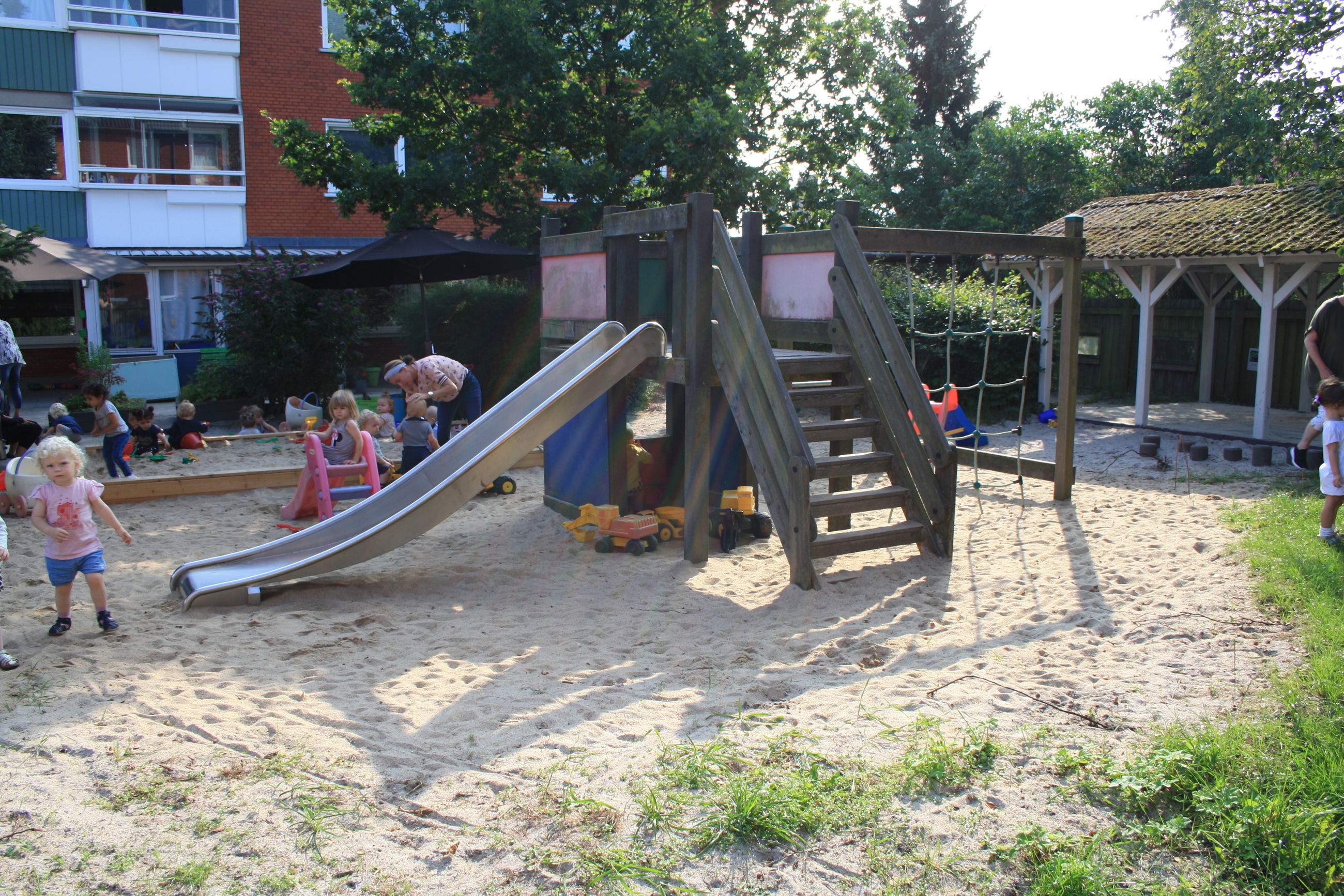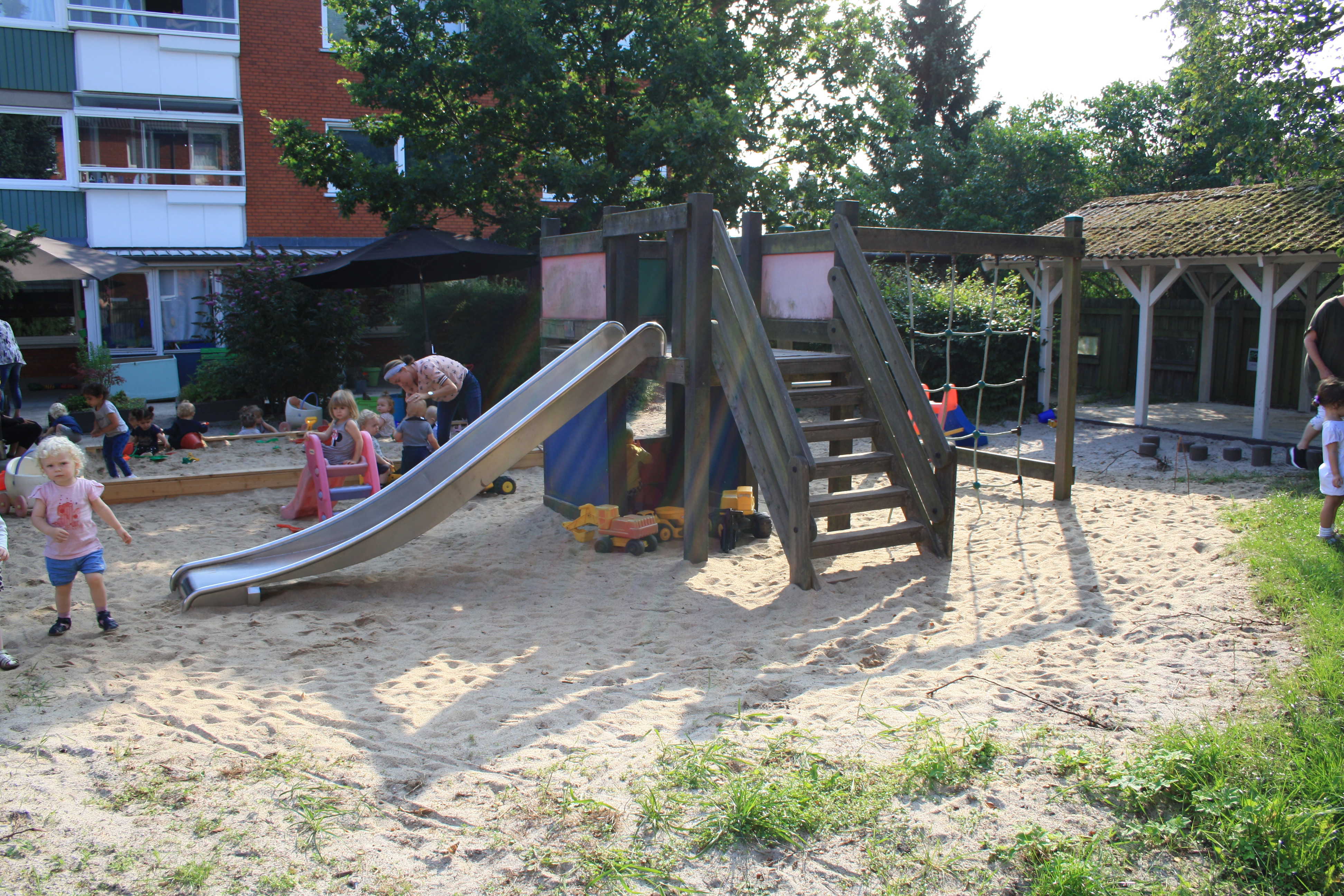 Vi har en skøn og overskuelig legeplads med en sandkasse, gynger, et legehus, klatrestativ, rutchebane og et grønt område. Der er både plads til motorisk udfoldelse og fordybelse på legepladsen. Der er desuden et halvtag ude på legepladsen, som vi nogle gange spiser under.