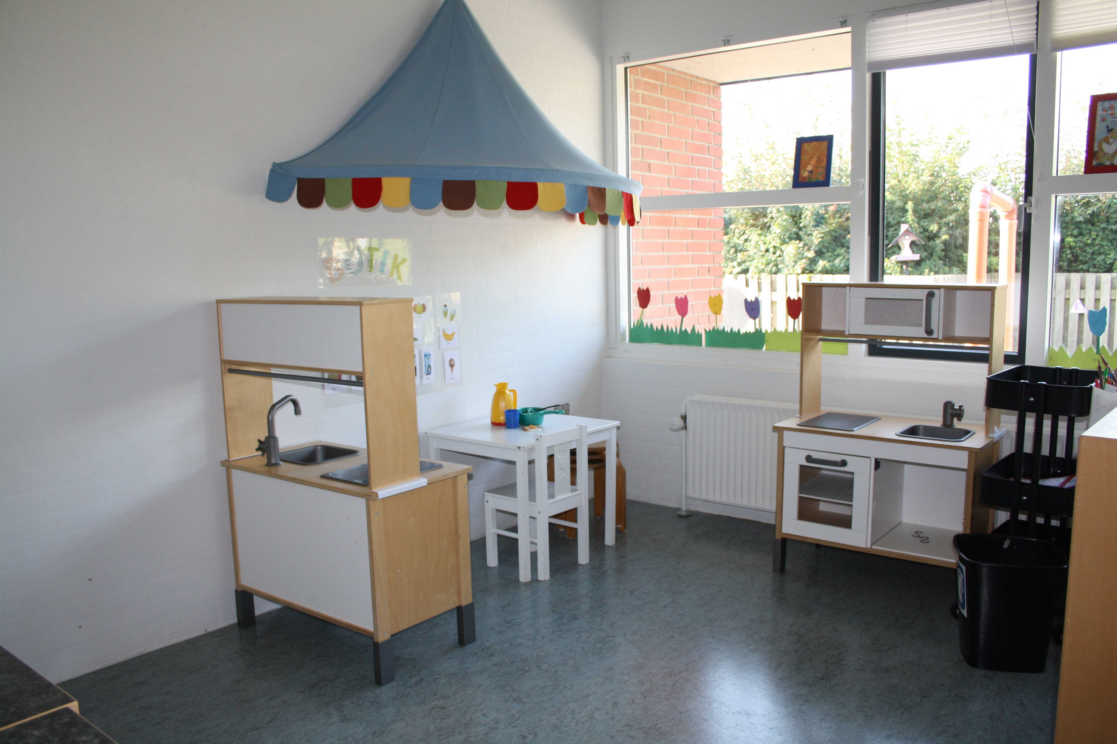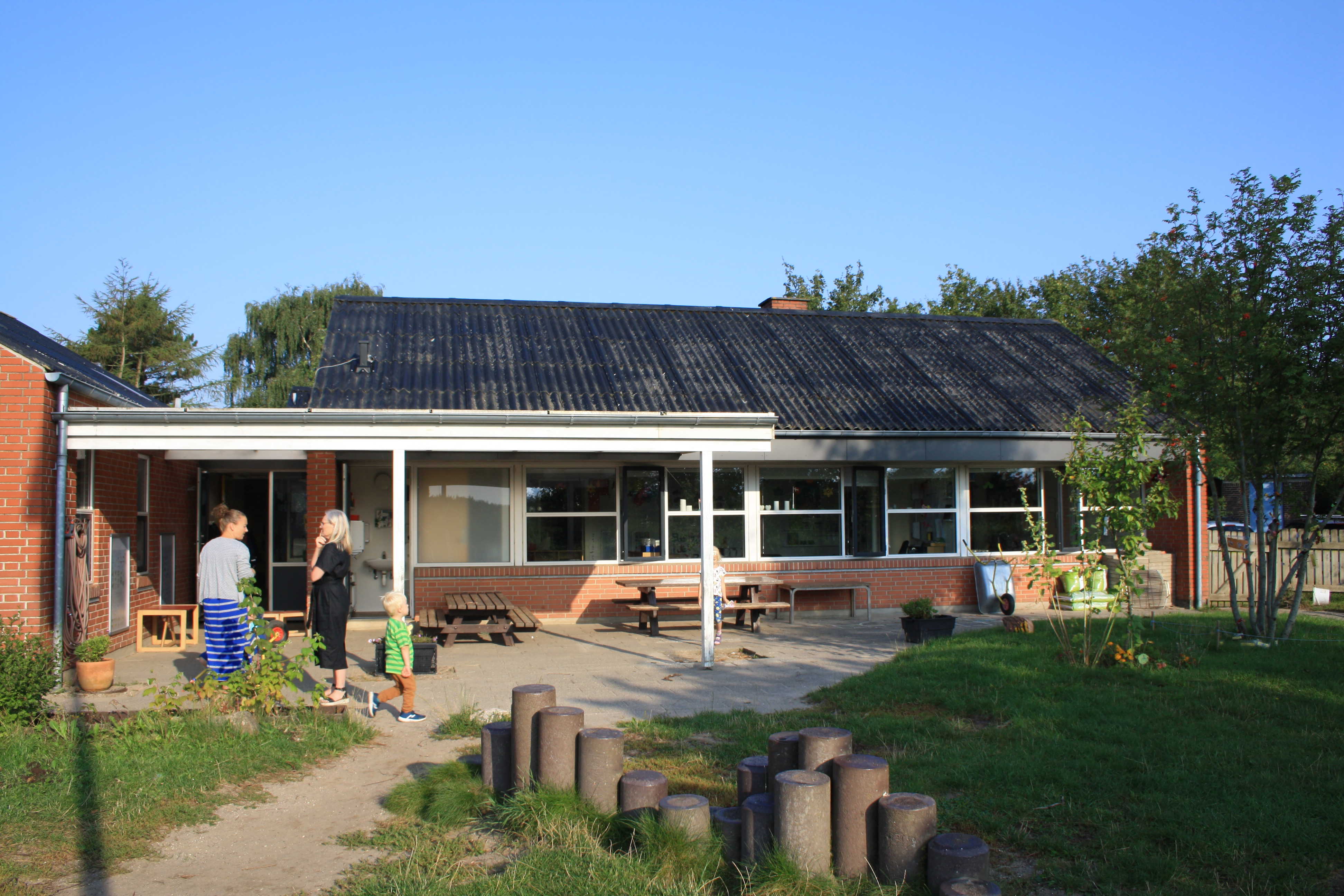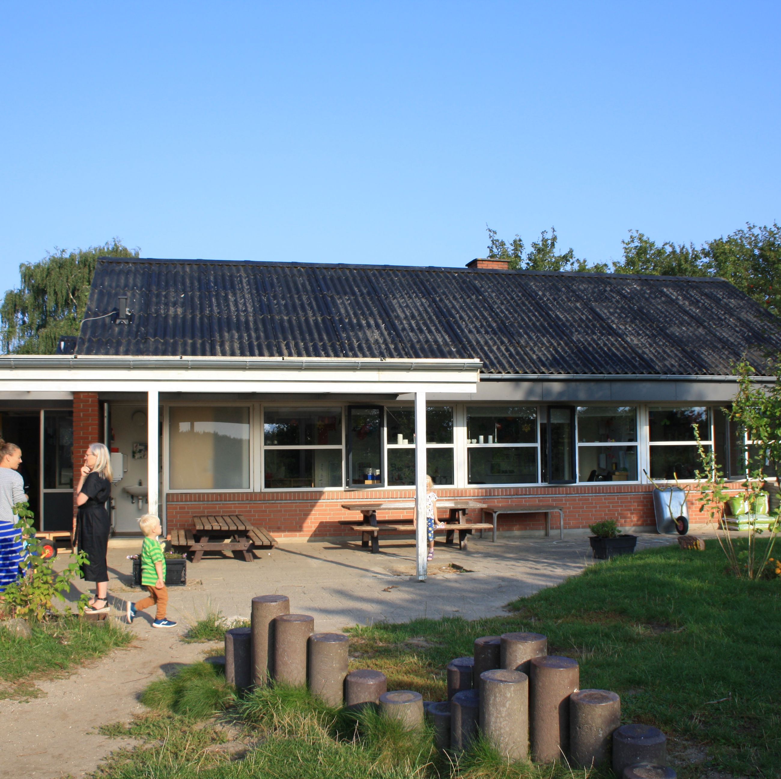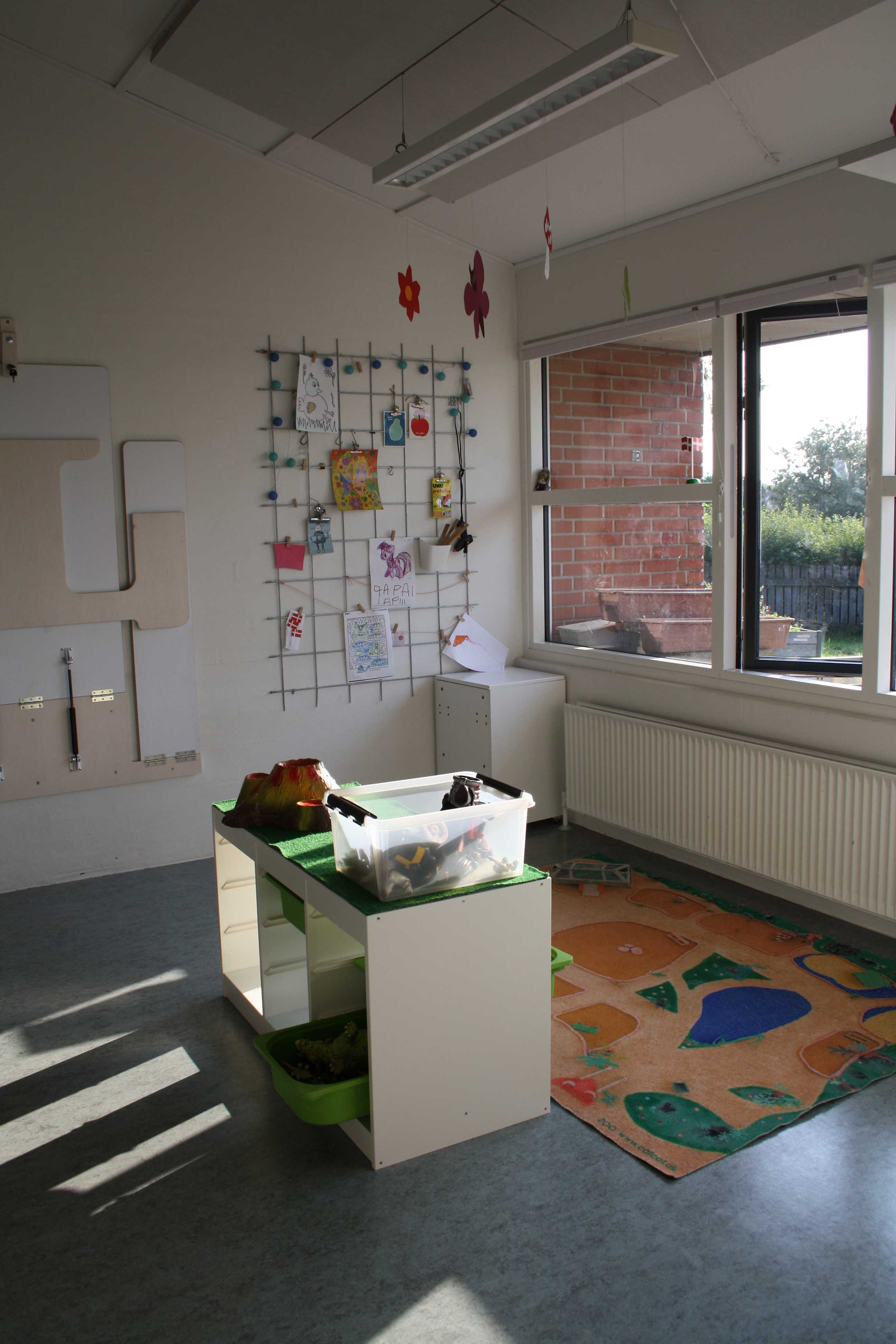 Huset er opbygget med store grupperum, som hver har et tilhørende mindre rum til fordybelse. Selv om huset er opdelt i to grupper, har vi altid åbne døre, så børnene kan frit besøge hinanden på tværs af grupperne.