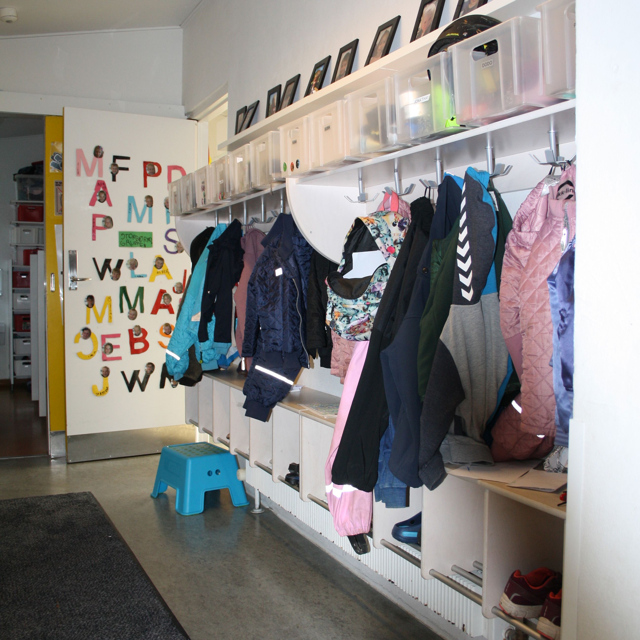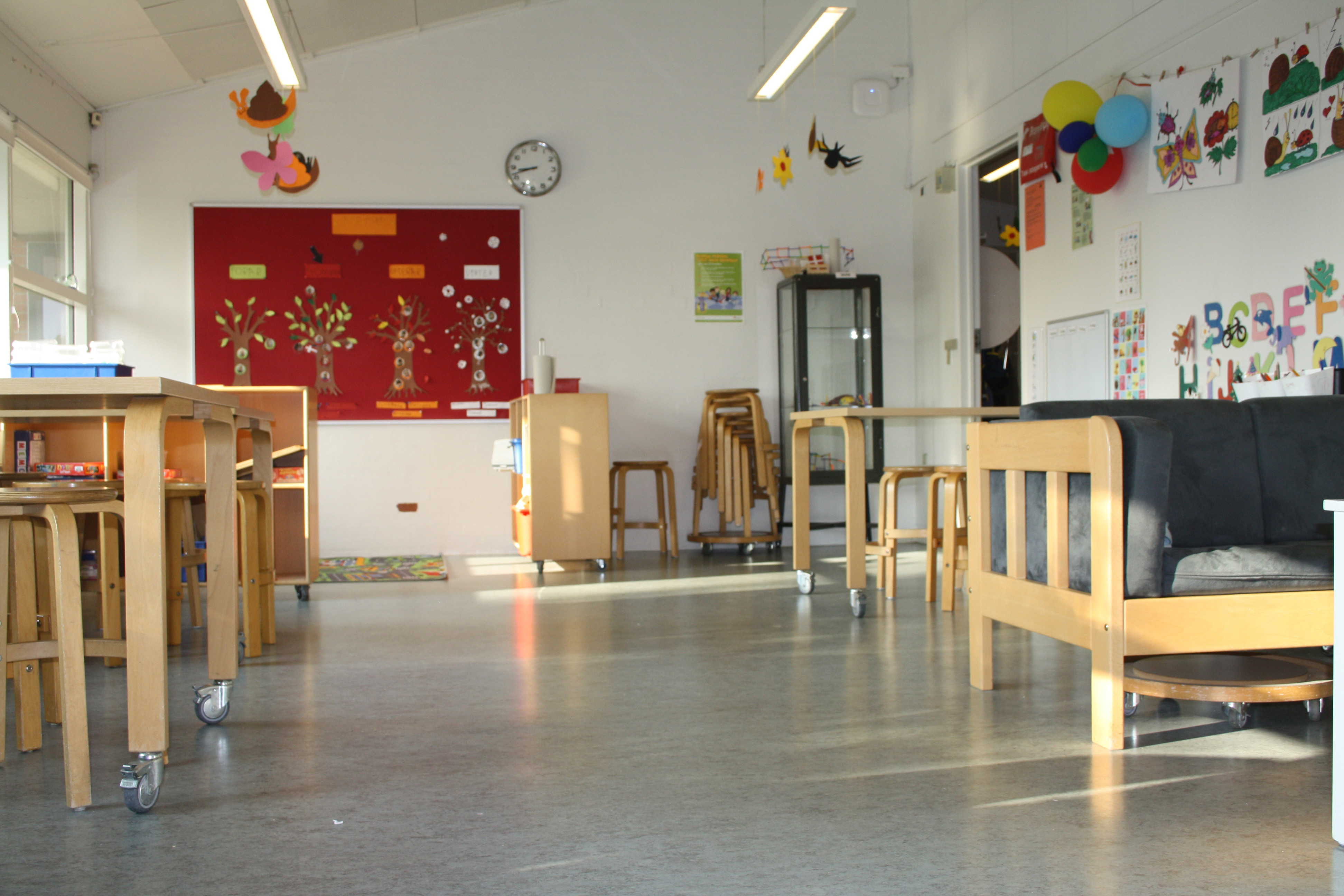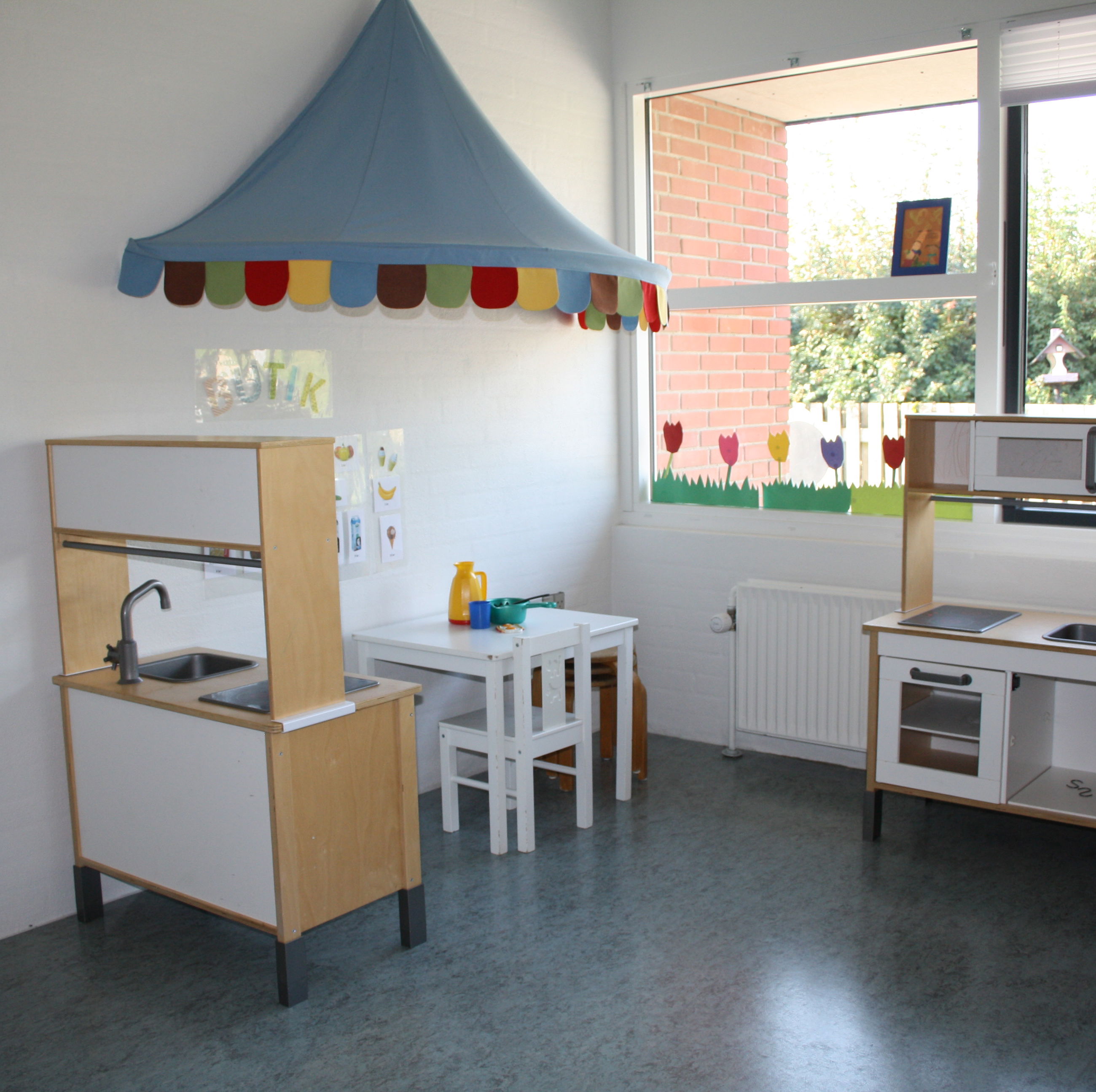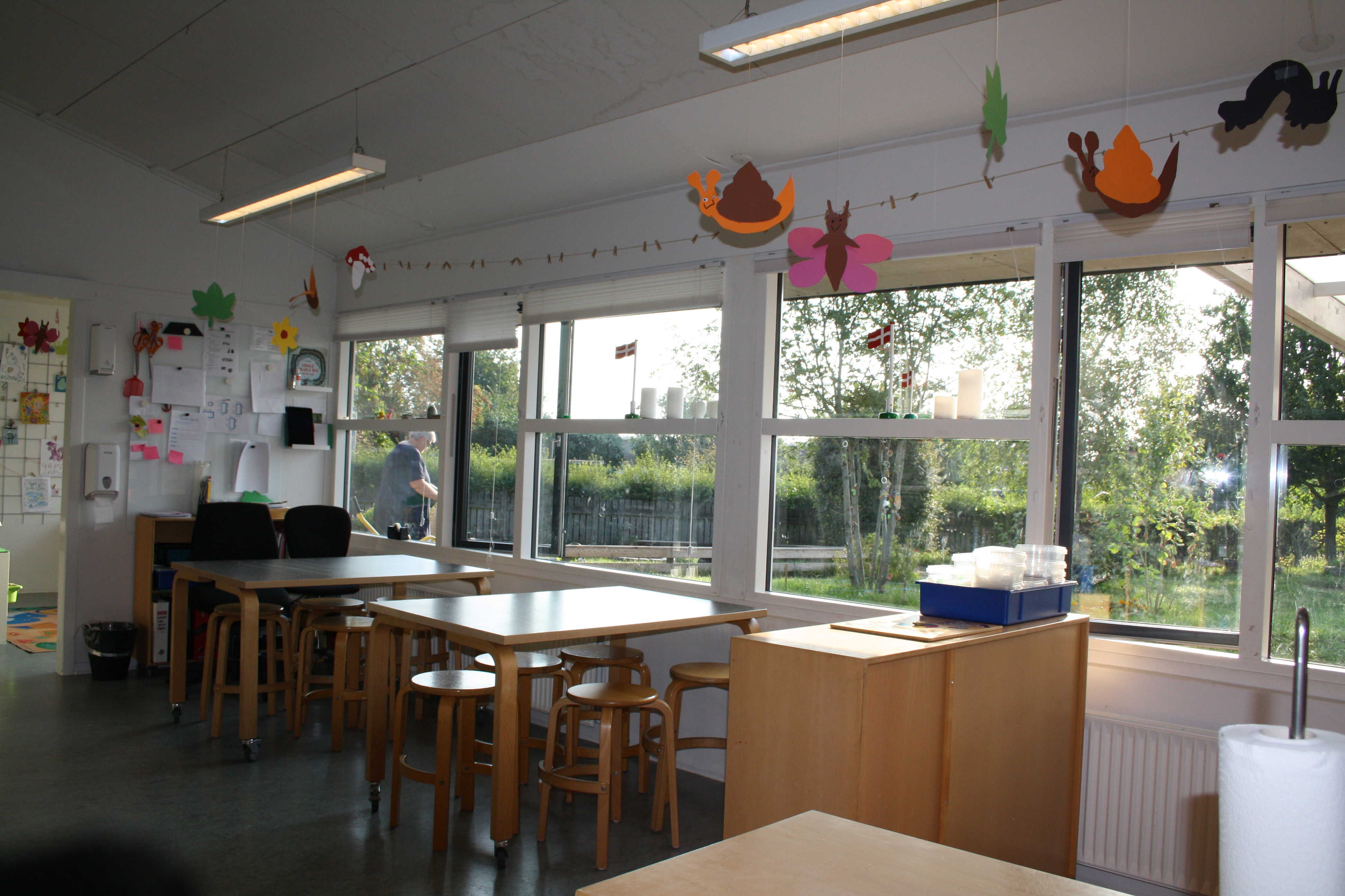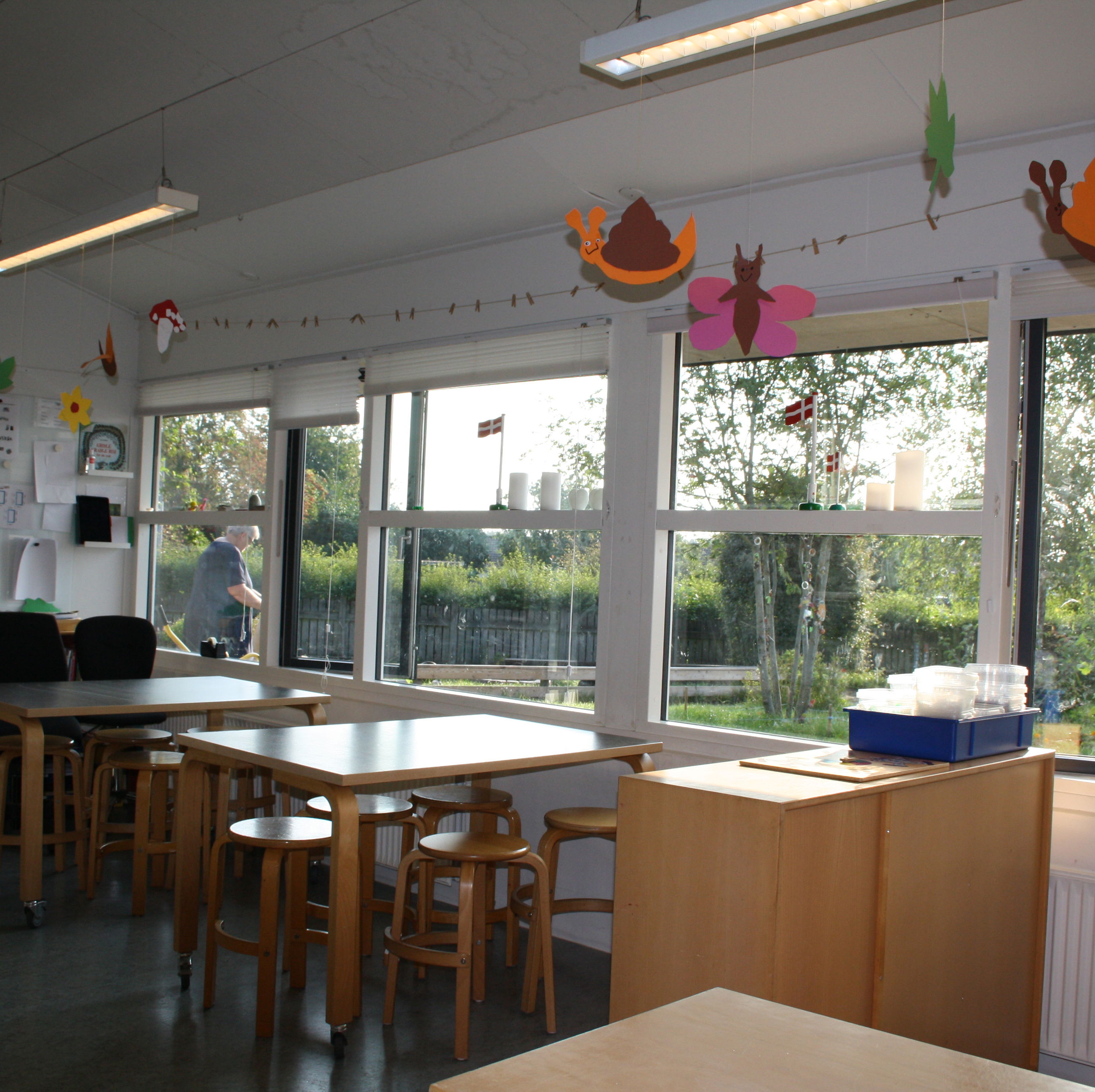 Huset er opbygget med store grupperum, som hver har et tilhørende mindre rum til fordybelse. Selv om huset er opdelt i to grupper, har vi altid åbne døre, så børnene kan frit besøge hinanden på tværs af grupperne.